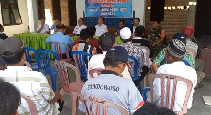 Bondowoso, KLIKTODAY.CO.ID – Babinsa Koramil 0822/04 Tenggarang Serka Lugito menghadiri undangan musyawarah pembentukan Pengurus Badan Usaha Milik Desa (Bumdes), di Balai Desa Sumber Salam, Kecamatan Tenggarang, Kabupaten Bondowoso, Jum’at (5/8/2022).