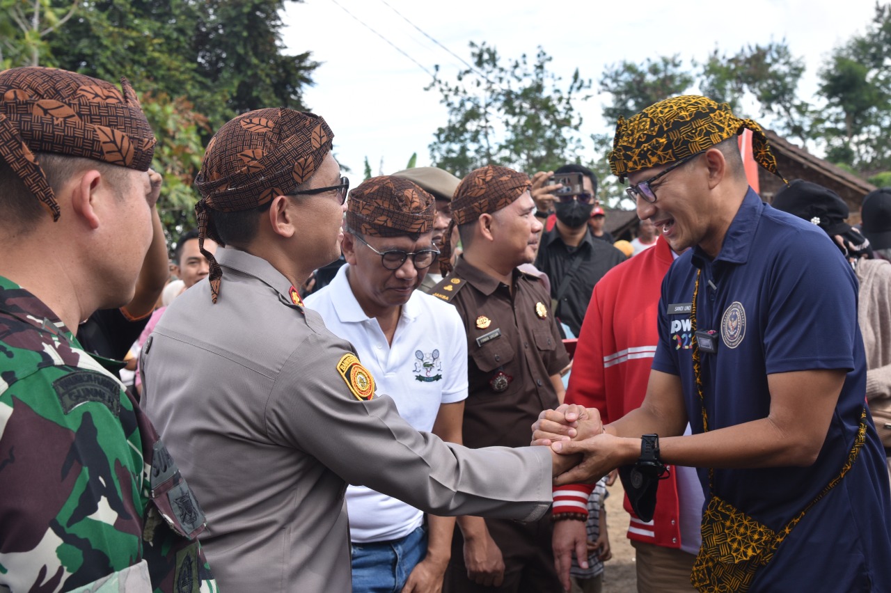Dalam hal ini Kapolres Bondowoso AKBP. Wimboko, SIK mengucapkan selamat datang kepada Menteri Periwisata dan Ekonomi Kreatif (Menparekraf) yang sudah hadir di Desa Wisata Tirta Agung di Kecamatan Sumber Wringin.