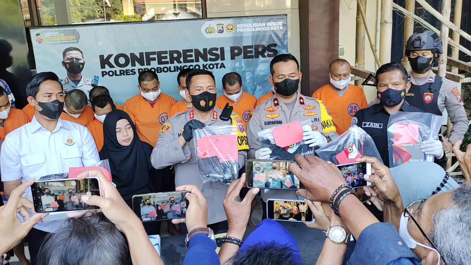 Kapolres Probolinggo Kota AKBP Wadi Sa’bani S.H.,S.I.K. didampingi oleh Wakapolres Kompol Subiyantana S.H.,M.H. dan Kasat Reskrim AKP Jamal saat pers rilis menegaskan bahwa pihaknya tidak akan pernah memberikan ruang gerak bagi para pelaku tindak kejahatan.