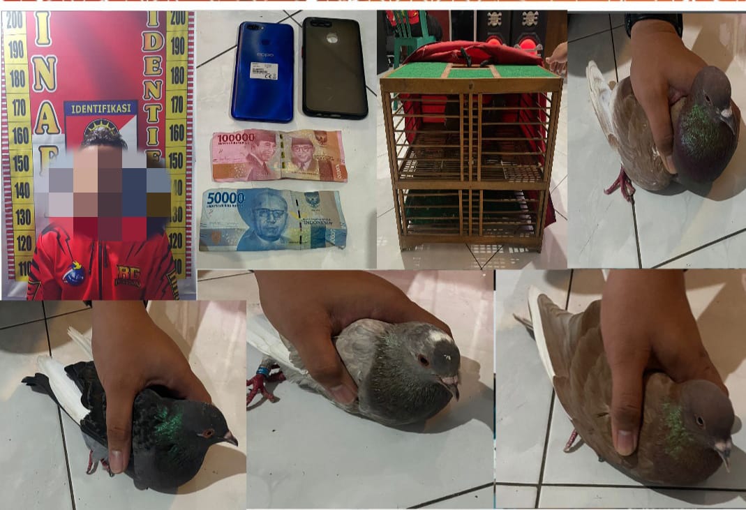 Dari tangan pelaku, polisi berhasil mengamankan barang bukti, diantaranya uang tunai sebesar Rp. 150 ribu, 1 unit handphone sebagai sarana pelaku dalam mengumpulkan data para petaruh, 1 kurungan merpati dan 4 ekor burung merpati.