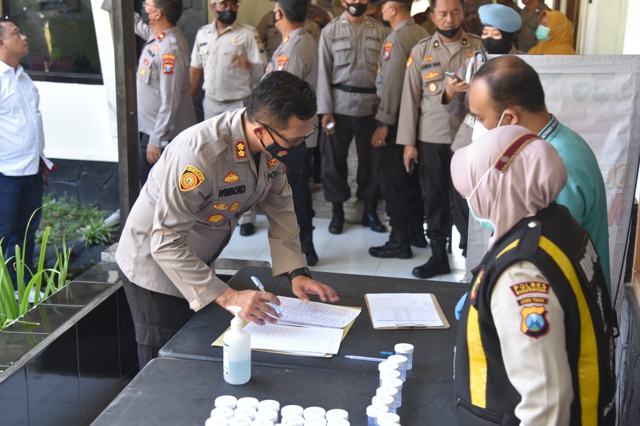 “Jika ada personel yang hasil tes urinnya didapati positif, maka akan dilakukan penindakan sesuai dengan prosudur,” tegas AKBP. Wimboko, SIK.