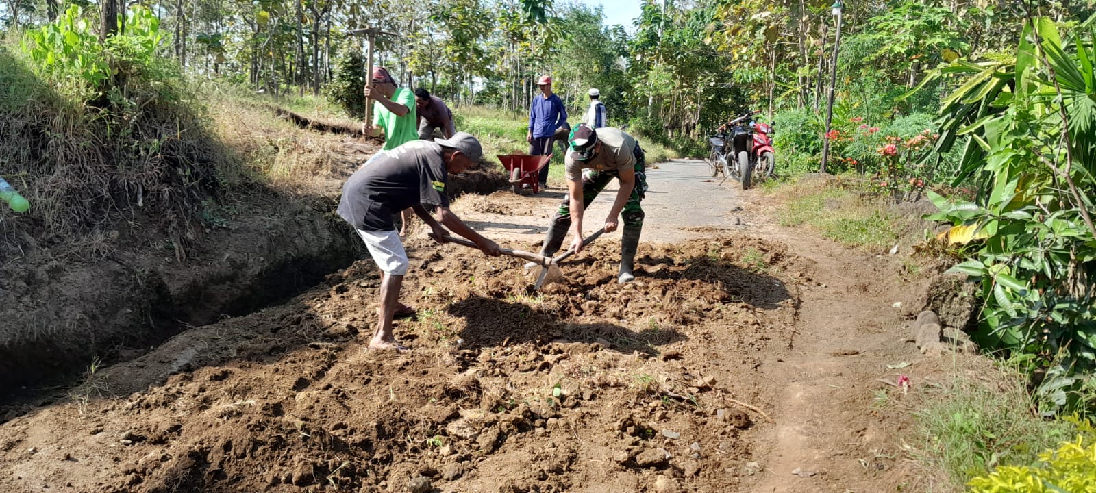 Bondowoso, KLIKTODAY.CO.ID – Babinsa Koramil 0822/15 Klabang Kodim 0822/Bondowoso Koptu David melaksanakan gotong royong bersama masyarakat Desa Binaan dalam rangka perbaikan jalan dan pembuatan parit yang ada di Dusun Geddingan Desa Karanganyar Kecamatan Klabang Kabupaten Bondowoso, Minggu (28/8/2022).