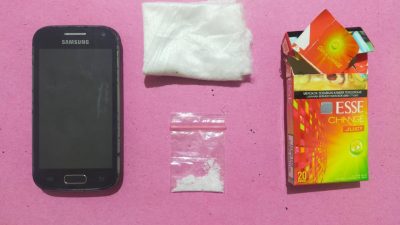 Tak kurang akal, petugas melakukan pemeriksaan secara mendetail dan berhasil mengungkap barang bukti berupa 1 poket sabu-sabu yang dibungkus dengan tisu dan dimasukkan ke dalam bungkus rokok. “Sabu-sabu dengan berat kotor 0,70 Gram kami temukan” pungkas Kapolsek.