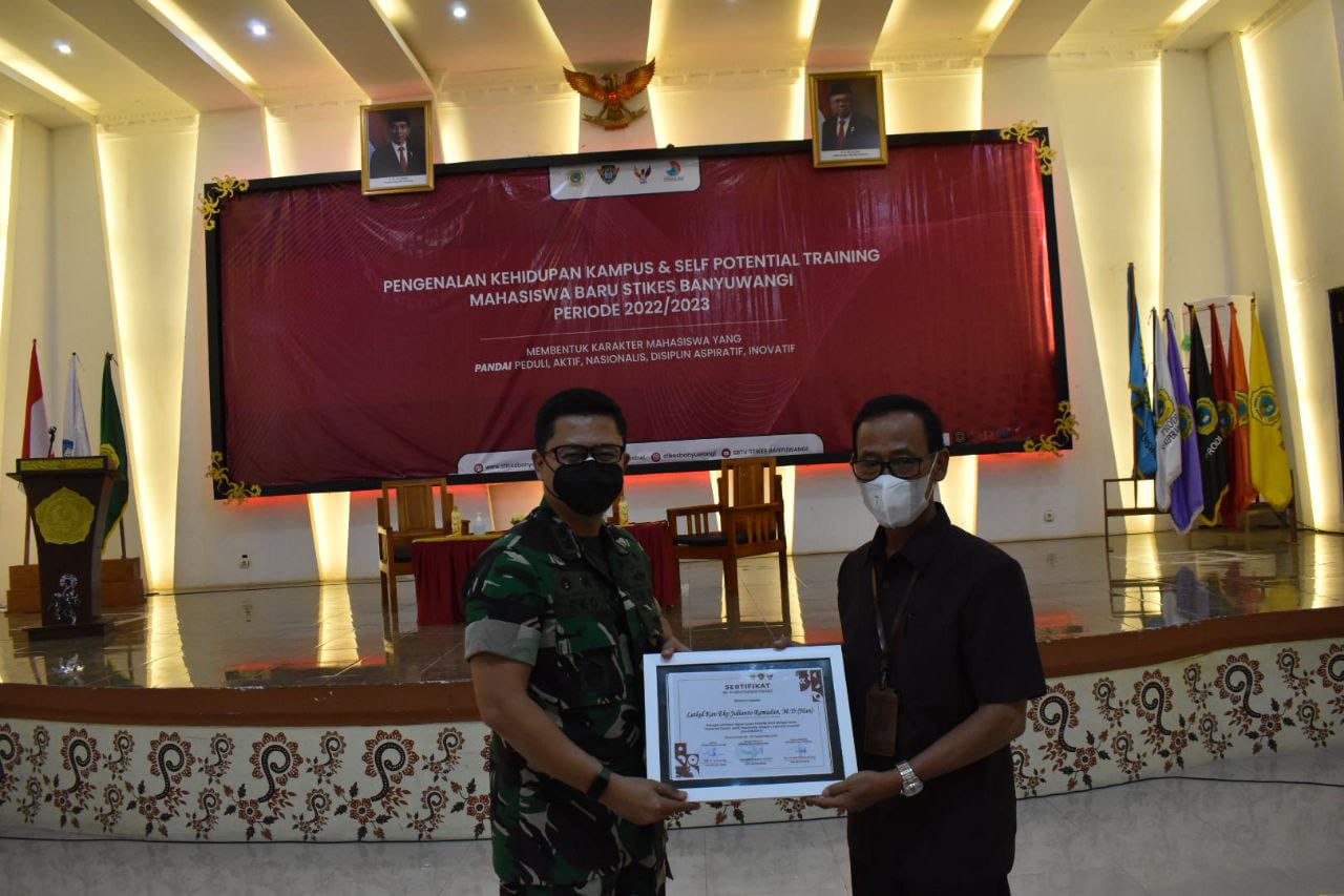 Dr. H. Soekarjo Rektor Stikes Banyuwangi mengucapkan,”selamat datang Bapak Dandim 0825 Letkol Kav Eko Julianto Ramadan, M.Tr.(Han) di kampus Sekolah Tinggi Ilmu Kesehatan Banyuwangi yang telah memberikan edukasi wawasan kebangsaan dengan materi kehidupan Berbangsa, Bernegara dan Pembinaan Kesadaran Bela Negara, semoga apa yang di sampaikan oleh Dandim siswa-siswi dapat mendengar dengan baik,”ucapnya