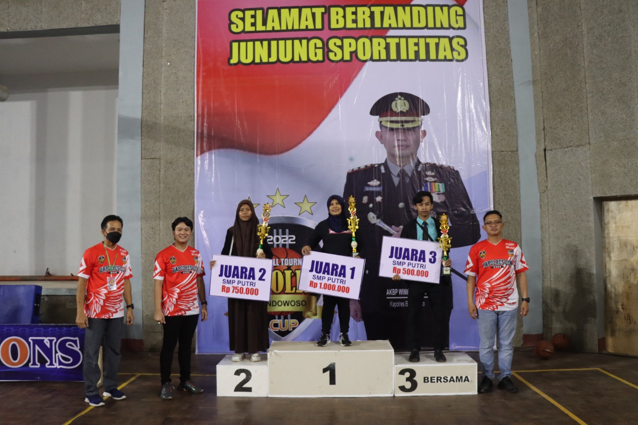 Tepatnya pada hari Sabtu 10/09 2022 ini Kapolres Cuo Basketball resmi ditutup. Penutupan Turnament Basket Ball ini di pimpin langsung oleh Kapolres Bondowoso AKBP Wimboko, SIK.