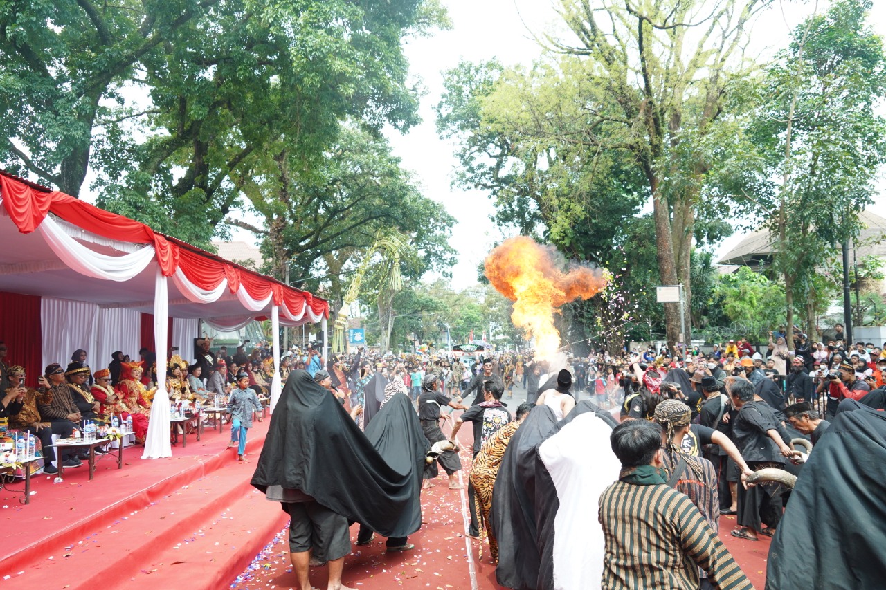 Mengusung tema “Bangkit Bermartabat”, karnaval di Kota Malang ini dalam rangka memeriahkan HUT ke-77 RI sekaligus menjaga momentum pemulihan sendi ekonomi dan sosial masyarakat.