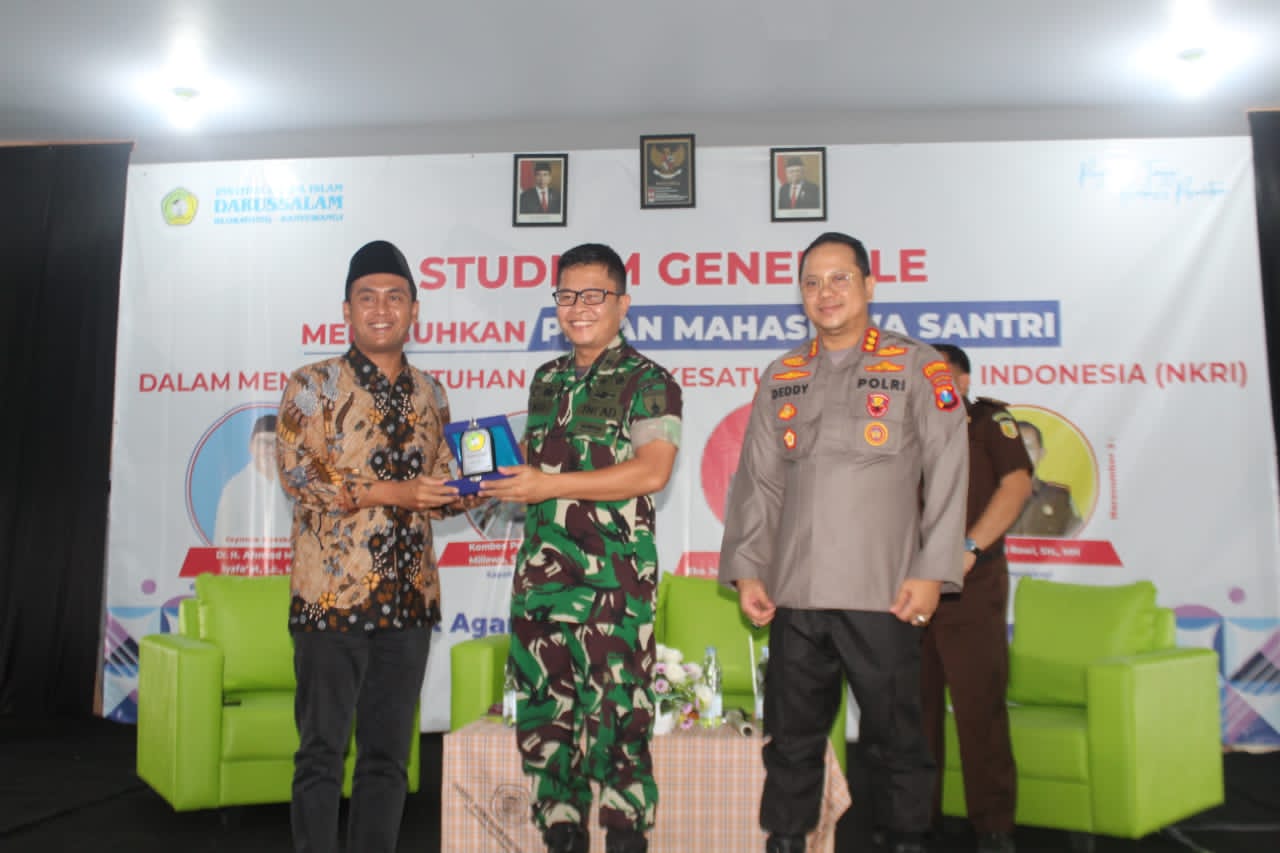 Banyuwangi, KLIKTODAY.CO.ID – Guna memupuk jiwa nasionalisme generasi muda Letkol Kav Eko Julianto Ramadan, M. Tr. (Han) Dandim 0825 laksanakan kegiatan pemberian Materi Wawasan Kebangsaan Studium Generale Meneguhkan Peran Mahasiswa Santri Dalam Menjaga Keutuhan Negara Kesatuan Republik Indonesia kepada Mahasiswa-Mahasiswi Pondok Pesantren Institut Agama Islam Darussalam (IAIDA) Blokagung dengan tema yang berlokasi di Blokagung Karangdoro Kecamatan Tegalsari Kabupaten Banyuwangi Jawa Timur. (15-09-2022)