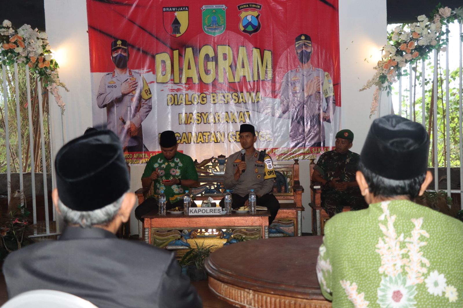 Pasuruan, KLIKTODAY.CO.ID – Guna menyerap aspirasi masyarakat di wilayah Kabupaten Pasuruan, Kapolres Pasuruan AKBP Bayu Pratama Gubunagi, bersama PJU Polres Pasuruan, Kapolsek Gempol, Danramil Gempol, Kades se-Kecamatan Gempol, dan Tokoh Agama Gempol menggelar kegiatan Dialog Bersama Masyarakat (Diagram), yang dilaksanakan di Griya Sakinah, Desa Sumbersuko, Kecamatan Gempol, Kabupaten Pasuruan, Kamis (06/10/2022).