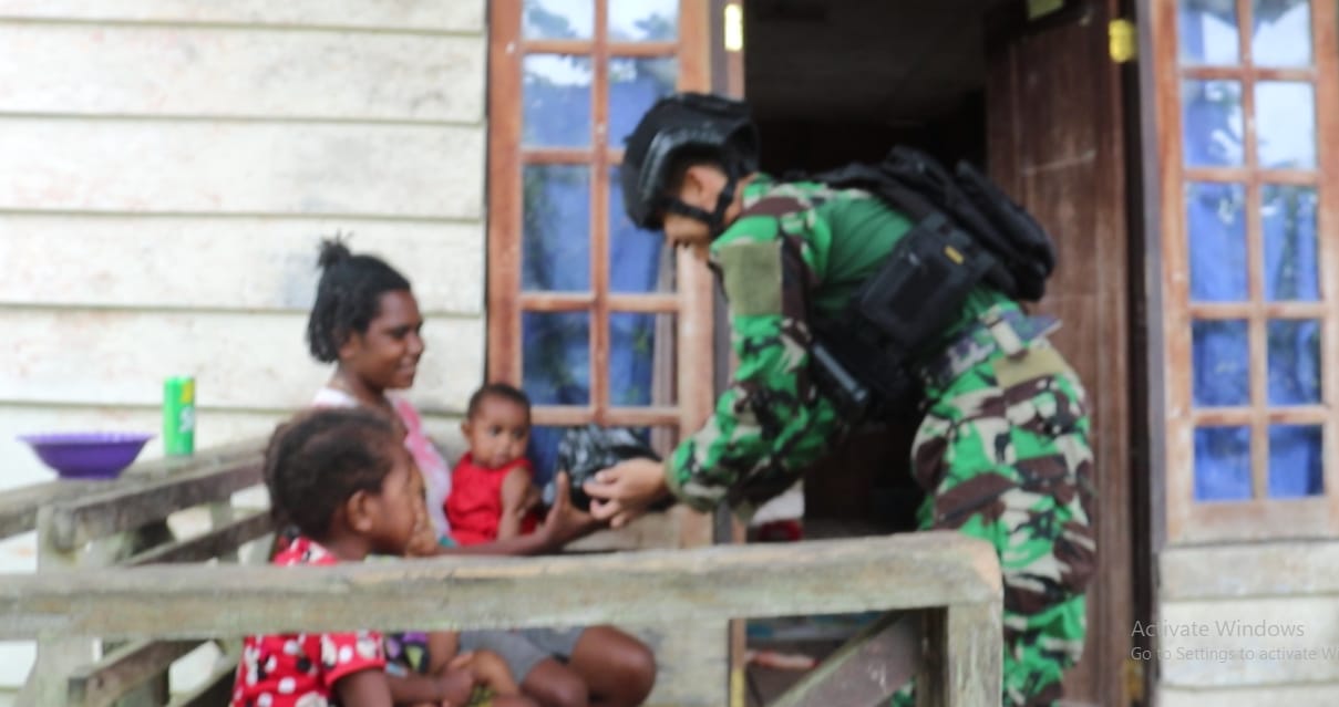 Komandan Satgas, Letkol Inf Rinto Wijaya, S.A.P., M.I.Pol., M.Han. didampingi Pasiter dan anggota pos keliling kampung Ginid untuk membagikan sembako kepada masyarakat yang membutuhkan bantuan. Hal ini dilakukan sebagai wujud kepedulian Satgas terhadap masyarakat yang masih kekurangan.