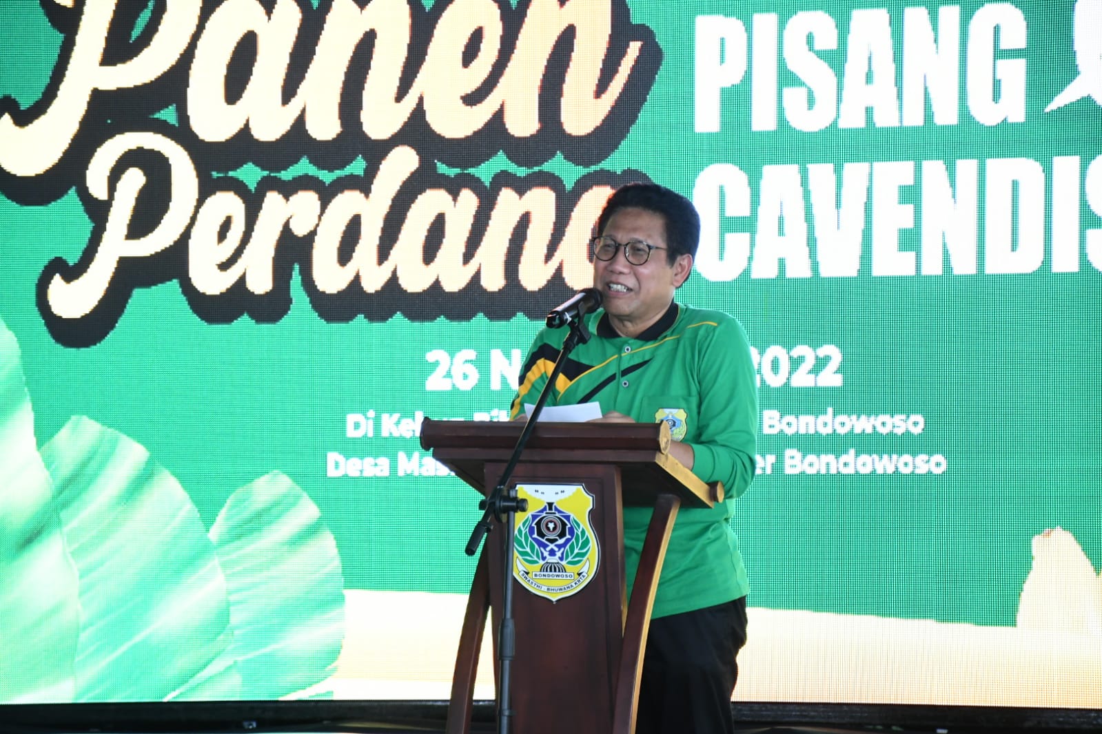 Menteri PDTT Dr. (H.C). H. Abdul Halim Iskandar, M.Pd., dalam sambutannya menyampaikan, “Kabupaten Bondowoso adalah penyedia produksi buah-buahan untuk merangsang para petani pisang Cavendish lebih serius dalam bertani pisang Cavendish. Pisang Cavendish dari Indonesia kita ekspor ke negara Jepang, Cina, UEA itu hanya sekitar 10 % dari hasil para petani.