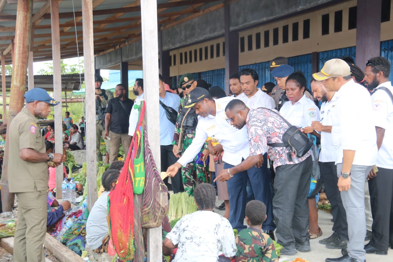 Dimulai dari Pasar lama kota Kenyam, Bupati Nduga didampingi oleh Dansatgas turun menyapa masyarakat dan melihat secara langsung kondisi masyarakat kota Kenyam.