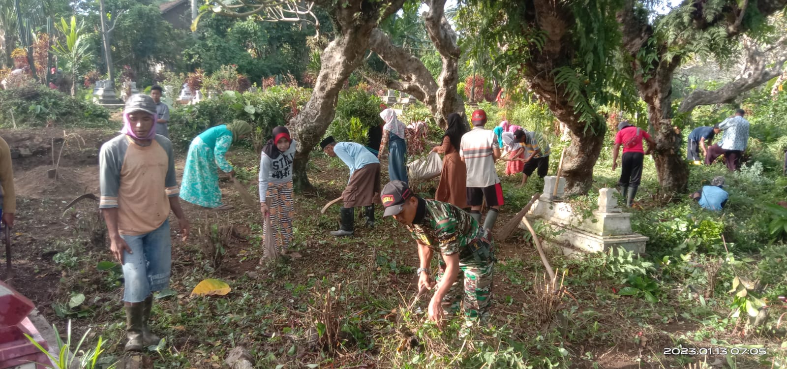 Danramil 0822/12 Sukosari Kapten Chb Bambang Adi Purnomo mengatakan, “Para Babinsa dan masyarakat setempat bersama sama membersihkan areal Tempat Pemakaman Umum (TPU) mulai dari menyemprot rumput menggunakan pestisida dan memotong ranting pohon, serta membersihkan sekeliling jalan menuju TPU.