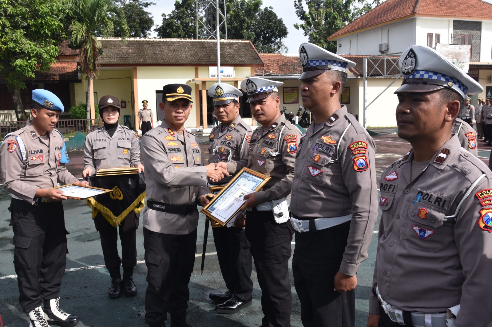 Kapolres Bondoowoso AKBP Wimboko, SIK pimpin langsung kegiatan Upacara Pemberian Penghargaan kepada Anggota yang berprestasi.