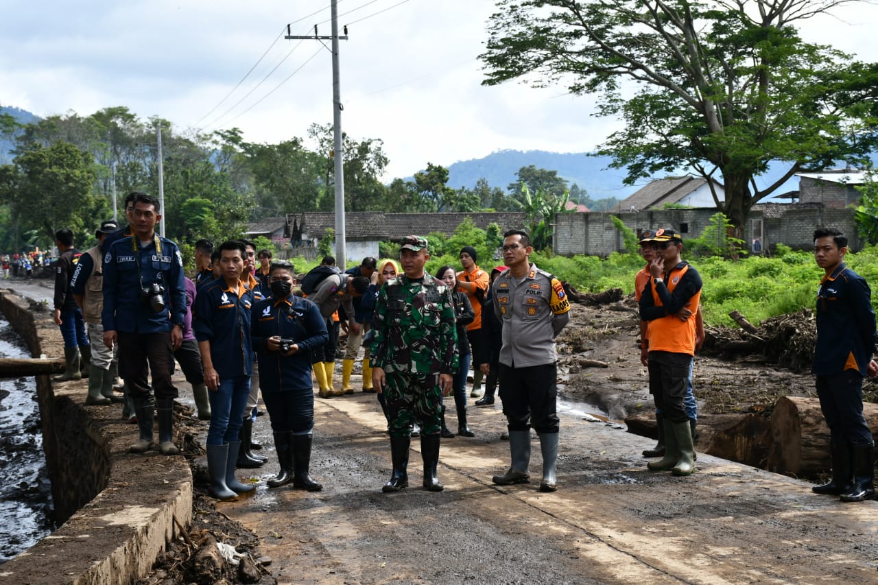 Bondowoso, KLIKTODAY.CO.ID – Selaku Dansatgas, Komandan Kodim 0822/Bondowoso Letkol Arm Suhendra Chipta, M.Tr.Hanla., didampingi Kapolres Bondowoso AKBP Wimboko, SIK., dan OPD terkait serta Muspika Kecamatan Ijen meninjau lokasi bencana banjir bandang susulan kemarin sore di beberapa titik, salah satunya di Simpang Tiga depan Poskoramil 0822/15 Ijen, Sabtu (18/2).