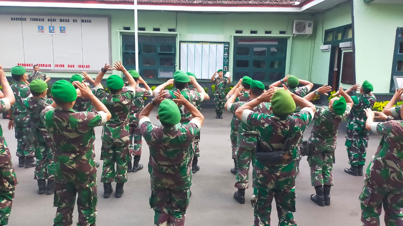 Usai apel pagi, Batiops Peltu Budi Hartono langsung mengambil alih untuk pelaksanaan PBB dan yel-yel Brawijaya.