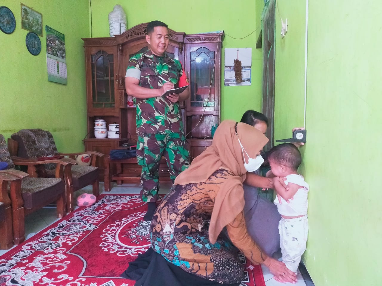 Salah satu upaya untuk dapat mewujudkan hal tersebut salah satu peran satuan kewilayahan terutama Koramil dan Babinsa turun langsung melaksanakan pendampingan pendataan anak anak Stunting dan berupaya bagaimana Stunting dapat di turunkan dan anak anak masuk dalam kategori anak anak yang sehat.