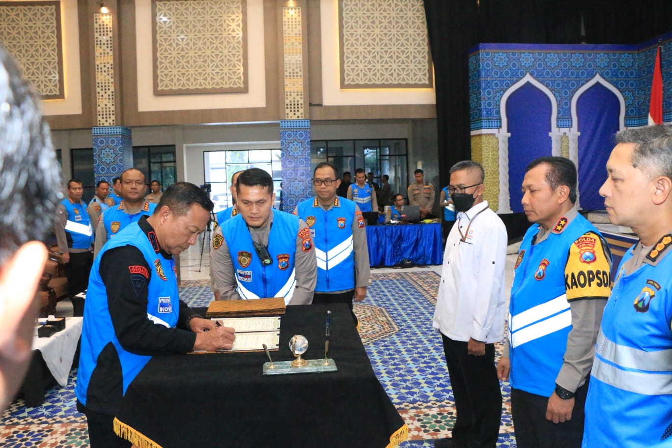 Surabaya, KLIKTODAY.CO.ID – Kapolda Jawa Timur Irjen Pol Dr. Toni Harmanto,MH didampingi Waka Polda Jatim Brigjen Pol Akhmad Yusep Gunawan beserta Pejabat Utama (PJU) Polda Jatim, menggelar Pakta Integritas dan Pengambilan Sumpah Seleksi Penerimaan Calon Anggota Polri TA. 2023 Panda Jatim Secara Luring dan Daring.