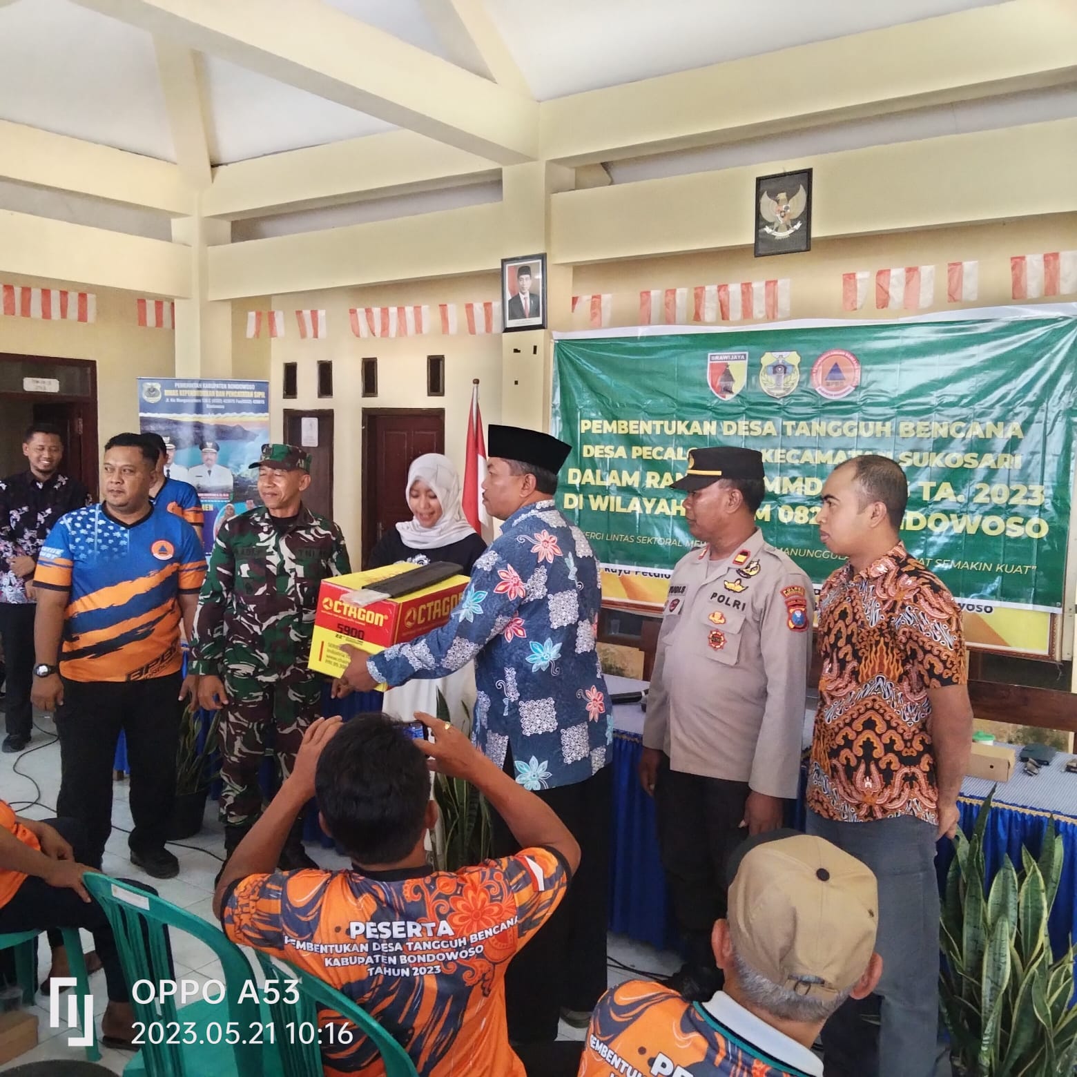 Bondowoso, KLIKTODAY.CO.ID – Desa Pecalongan Kecamatan Sukosari Kabupaten Bondowoso Melaksanakan Pembentukan Desa Tangguh Bencana (DESTANA) Kegiatan yang dipusatkan di Desa Pecalongan dan diikuti oleh Kepala Desa beserta perangkatnya dan kegiatan tersebut di hadiri oleh BPBD Kabupaten Bondowoso, Danramil Sukosari Kapten Chb Bambang Adi Purnomo sekaligus Plt Kapolsek Sukosari Iptu Yudi Sutristiono, dan Anggota Dewan Dari Fraksi PPP Hj. Siti Masrofatulmanna Wasyallwa. Mpd Dapil 3, Indra Siswoyo Map (Fasilitator), Babinsa, Yuliono Frianda (Kasi Kesiapsiagaan), Anang Bahtiar (Kasi Pencegahan), dan anggota 8 orang juga undangan 30 orang, Minggu (31/05/23).