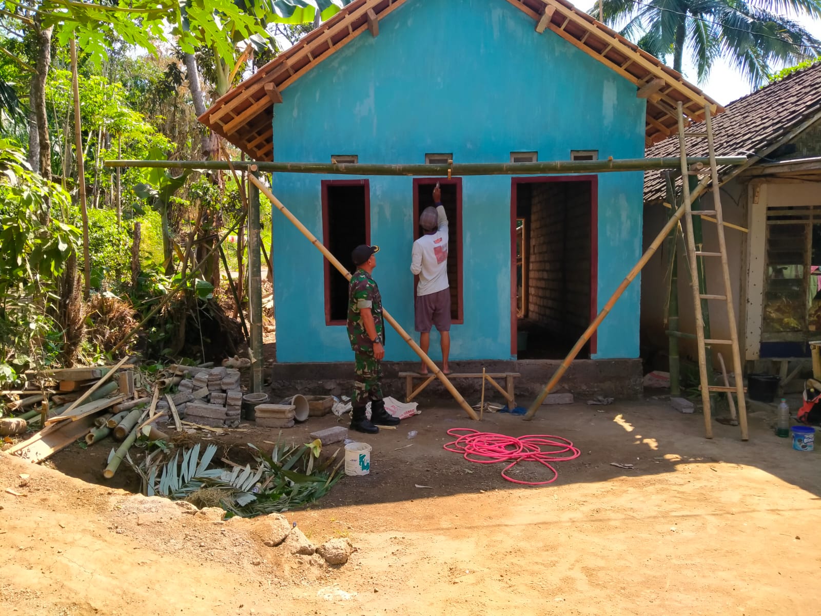 Di sela kegiatan Serka Edi Susanto Anggota Satgas TMMD ke 116 mengatakan, “pekerjaan Relokasi RTLH terlihat sebagian hampir siap, tetapi ada tahap finising yang perlu di lakukan untuk menambah indahnya rumah tersebut.