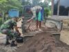 Koptu Slamet, salah satu Satgas TMMD Ke-116 Kodim 0822 nampak bersama petani membantu panen disalah satu sawah milik warga dan membantu angkat junjung gabah hasil panen.