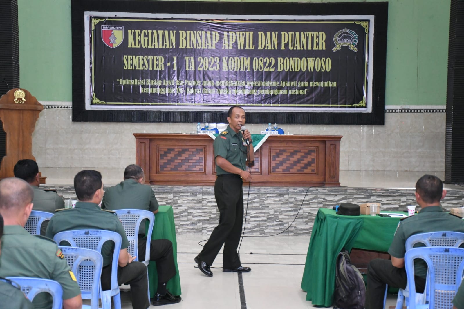 Dalam Sambutan Ws. Dandim 0822 Bondowoso mengatakan, ‘Kegiatan ini merupakan kegiatan yang rutin binsiap apwil dan puanter, kegiatan ini adalah proses untuk kinerja kita kedepan agar setiap kegiatan kita dapat melaksanakan dengan baik Kita juga harus menyiapkan apa yang menjadi tugas kita sebagai aparat kewilayahan, untuk kegiatan kita di desa binaan, contoh senyum sapa dan laksanakan komunikasi dengan baik kepada nasyarakat kita yang ada di wilayah masing-masing.