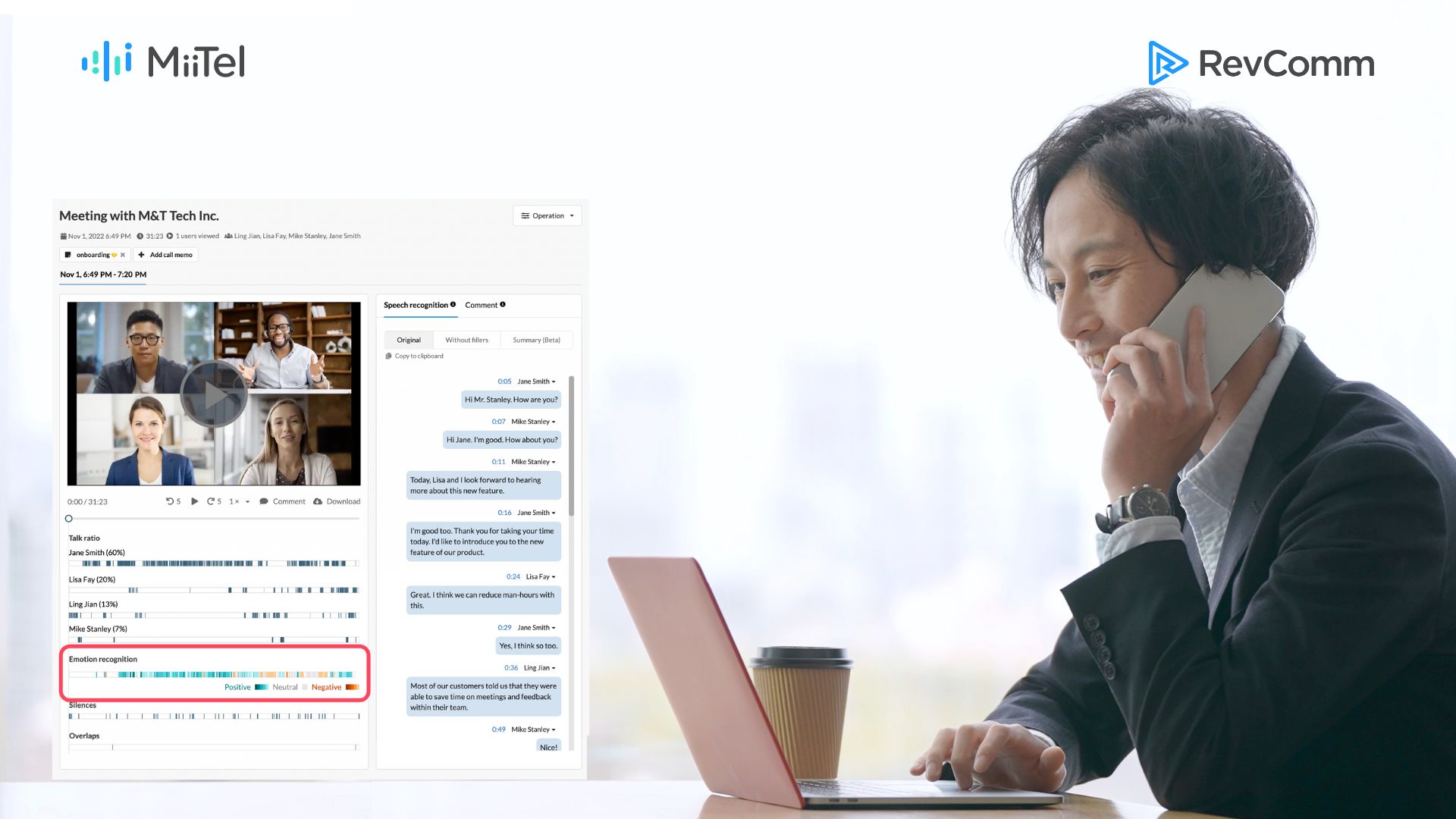 Selain itu, fitur pengenalan emosi suara juga tersedia untuk MiiTel Meetings, sebuah alat analisis online meeting berbasis AI yang dapat mendukung komunikasi bisnis dalam platform Zoom, Microsoft Teams, dan Google Meet.