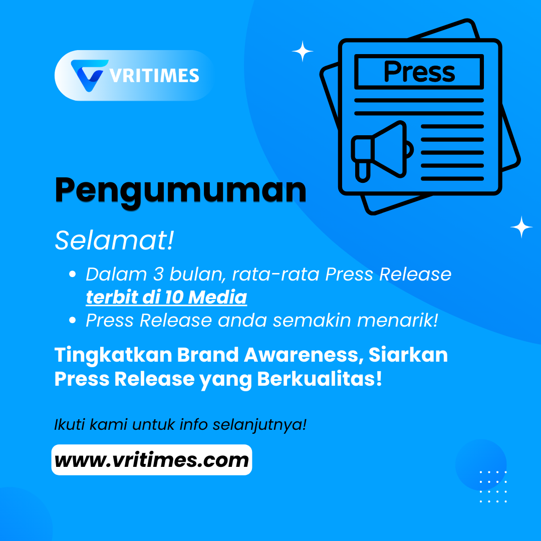 Terima kasih atas dukungan berkelanjutan Anda. Di VRITIMES Indonesia, rata-rata jumlah artikel per siaran pers selama tiga bulan terakhir mencapai 10 media. Berkat siaran pers berkualitas tinggi yang Anda berikan, kini, menjadi lebih mudah bagi berbagai perusahaan media untuk meliputnya. Harapan kami adalah mendistribusikan lebih banyak rilis ke publik dan dengan diliput oleh media, tentu dapat meningkatkan kesadaran merek Anda.