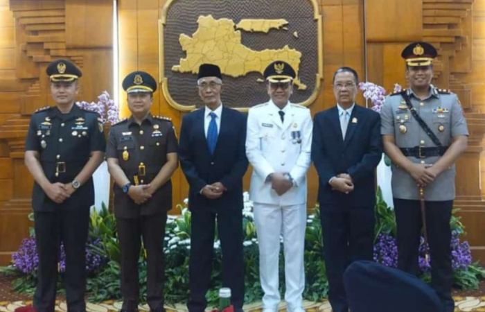 Bondowoso, PORTALBANGSA.CO.ID – Dandim 0822 Letkol Arm Suhendra Chipta M. Tr.,Hanla.,dan Forkopimda Bondowoso menghadiri pelantikan Pj. Bupati Bondowoso Drs. Bambang Soekwanto, MM., yang sebelumnya menjadi Sekretaris Daerah Bondowoso. Kegiatan tersebut berlangsung di Gedung Negara Grahadi, Surabaya dan dipimpin langsung oleh Gubernur Jawa Timur Dra. Hj. Khofifah Indar Parawansa, Minggu (24/9/2023).