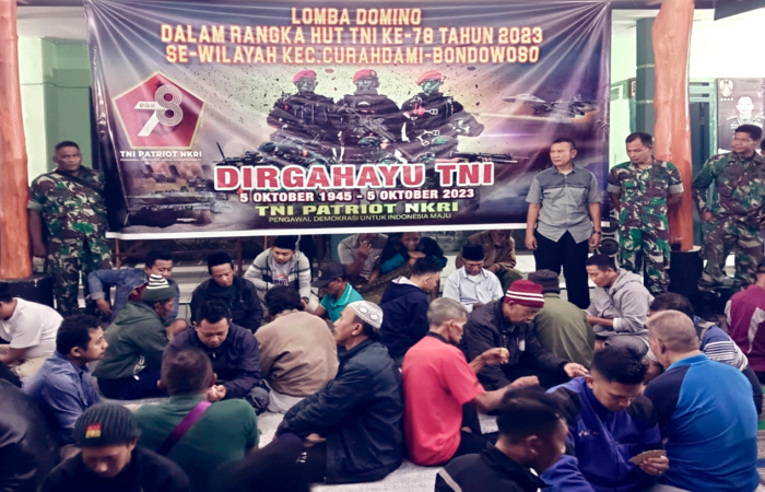 Bondowoso, PORTALBANGSA.CO.ID -Menyambut HUT TNI ke 78, Koramil 0822/ 02 Curahdami mengadakan lomba Domino yang dibuka secara umum. Perlombaan ini merupakan bentuk nyata Kemanunggal TNI bersama rakyat. Jumat (6/10/2023)