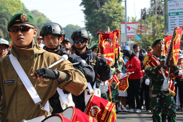 Bondowoso, PORTALBANGSA. CO. ID – Penampilan perdana Drumband Raksaka Bahana Sabaddha Yudha di kegiatan Jalan Jalan Sehat (JJS) yang diadakan oleh Kodim 0822 Bondowoso sangat menarik perhatian ribuan masyarakat Bondowoso. bertempat di depan Makodim kegiatan tersebut digelar. Minggu (15/10/2023)