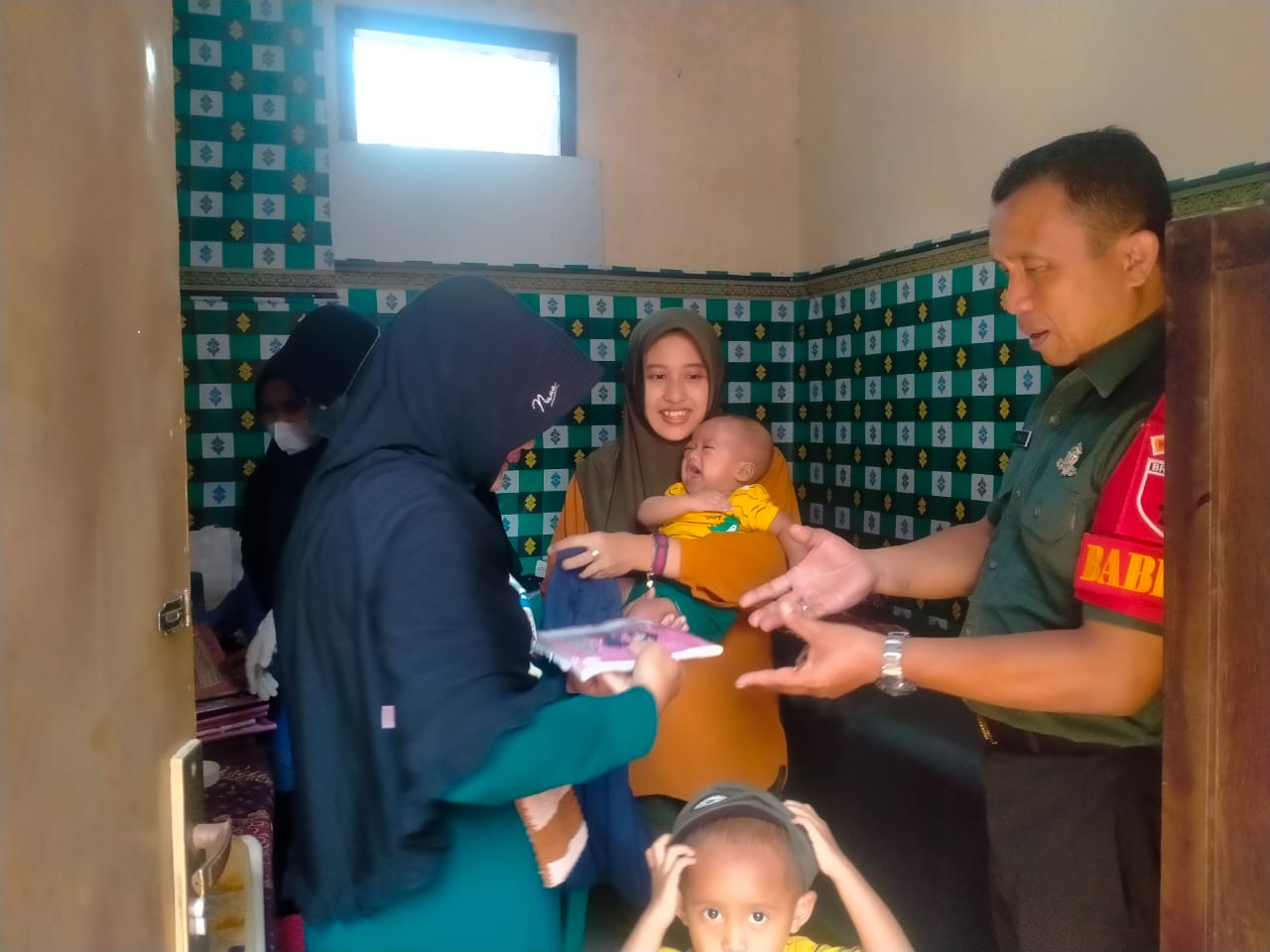 Bondowoso, PORTALBANGSA.CO.ID – Babinsa Koramil 0822/01 Bondowoso Sertu Achmad Basyuni laksanakan Pendampingan Penyuntikan Imunisasi Campak Kepada balita dari umur 1 tahun sampai dengan umur 12 tahun yang di gelar di di Poskel Kelurahan Badean Kecamatan/Kabupaten Bondowoso, Rabu (17/10/2023).