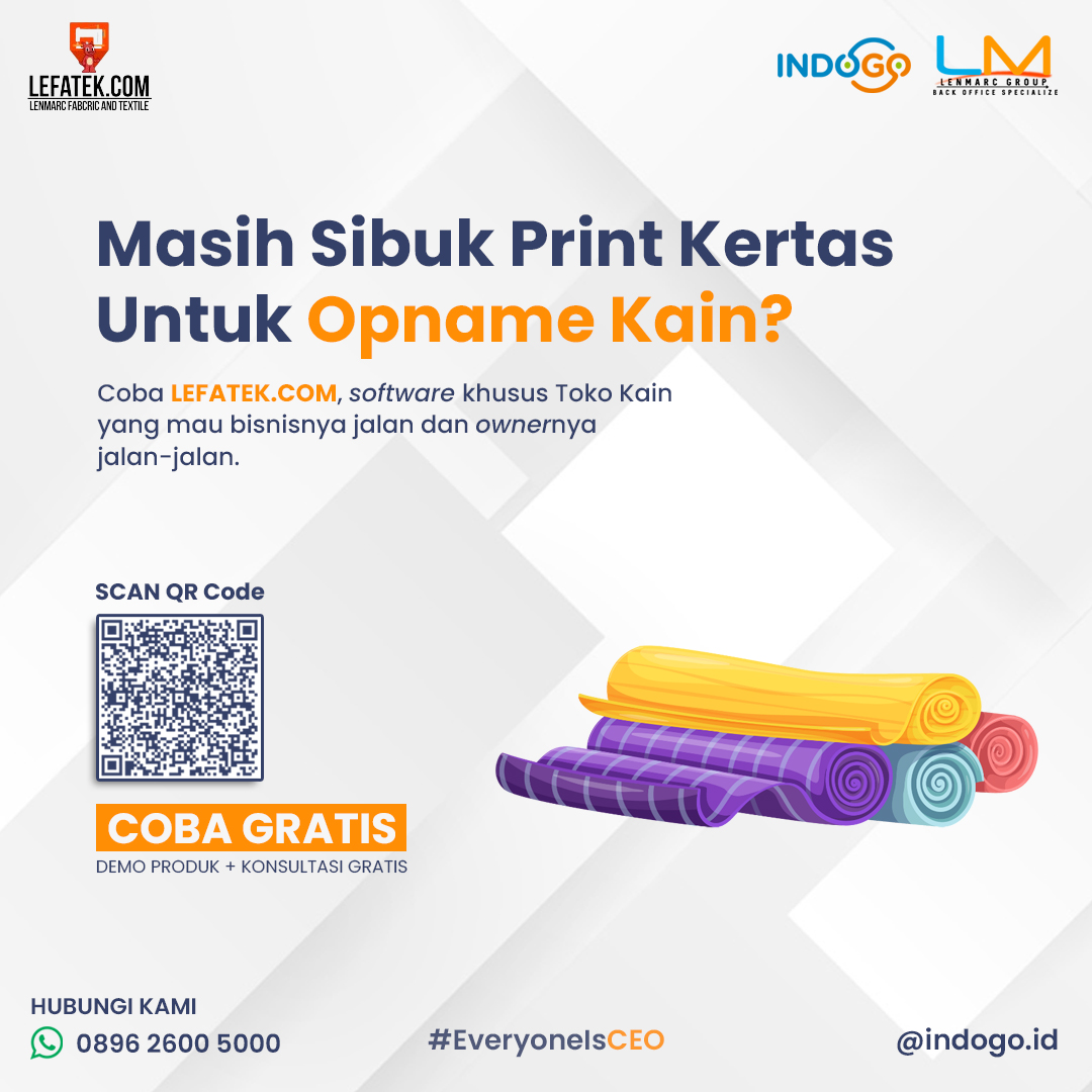 INDOGO.ID miliki produk LEFATEK, yang bisa bantu para pemilik Toko Kain untuk ubah proses toko menjadi lebih efektif dan efisien.