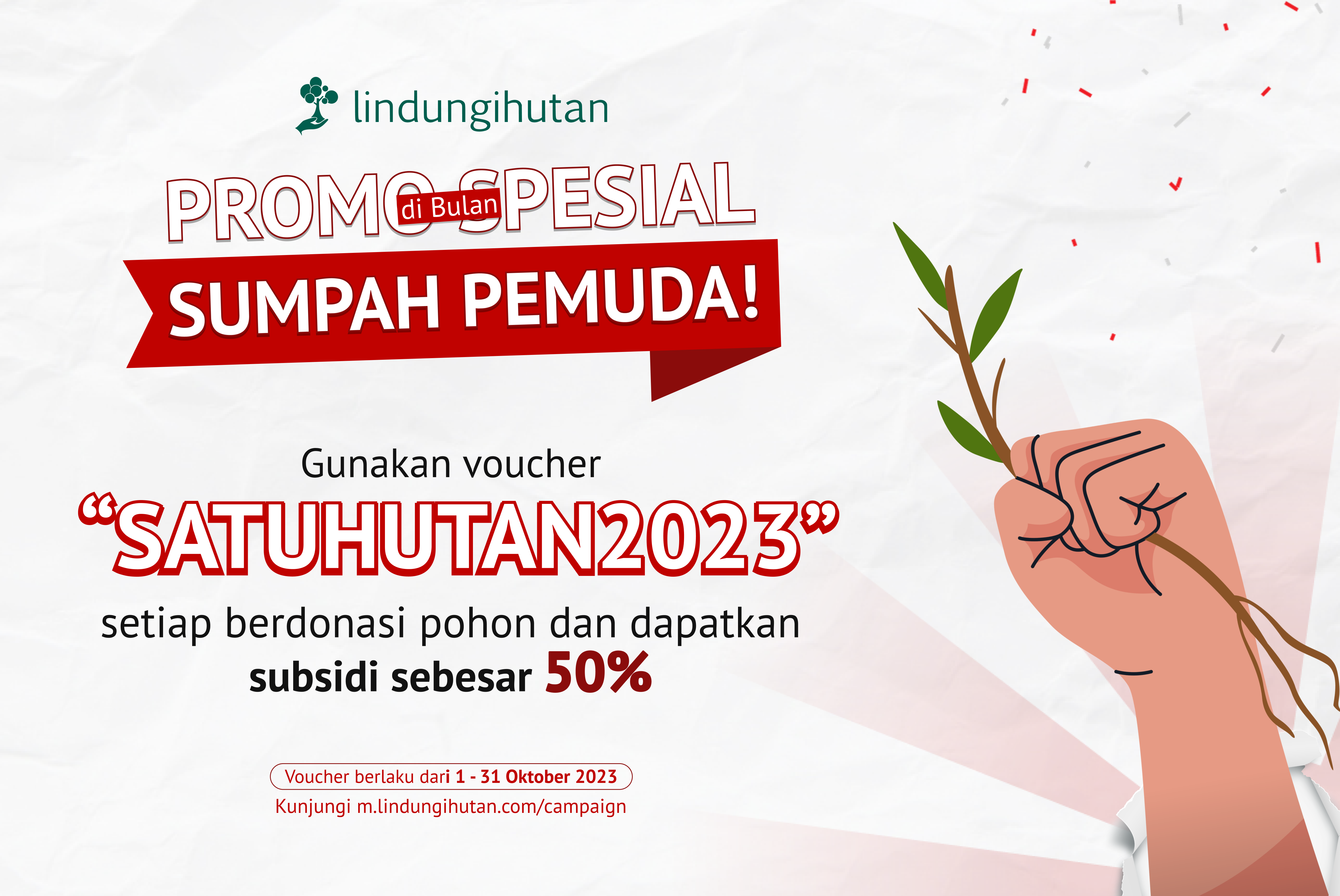 Dalam rangka peringati Hari Sumpah Pemuda tanggal 28 Oktober, LindungiHutan mengajak generasi muda untuk jaga kelestarian hutan. LindungiHutan bagikan promo penghijauan “SATUHUTAN2023” untuk setiap donasi pohon di platform LindungiHutan mulai 1-31 Oktober 2023.