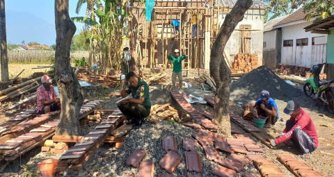 Bondowoso, PORTALBANGSA.CO.ID- Sebagai wujud kemanunggalan TNI dan Rakyat, Babinsa Koramil 0822/04 Tenggarang Serka Lugito membantu pembangunan rumah milik Bapak Bambang salah satu warga binaannya di Desa Gebang Rt. 17 Rw. 02 Kecamatan Tenggarang Kabupaten Bondowoso, Senin (30/10/2023).