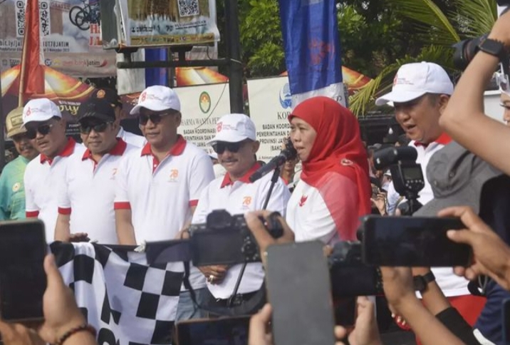Bondowoso, PORTALBANGSA.CO.ID – Dalam rangka perayaan Hari Ulang Tahun (Hut) ke-78 Provinsi Jawa Timur, Gubernur Jawa Timur Khafifah Indar Parawansa bersama Walikota Bupati se Bakorwil V Jember turut hadir dalam acara Jalan sehat yang diselenggarakan oleh pemerintah Provinsi Jawa Timur.