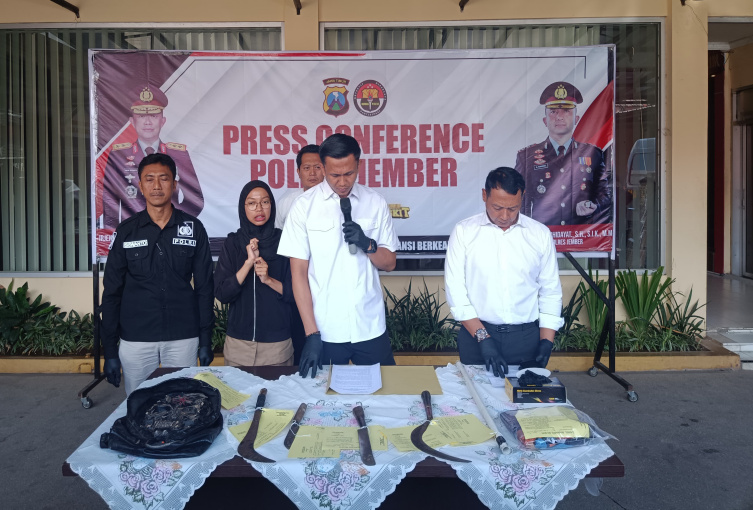 Tim Patroli Polres Jember bersama Polsek Ajung berhasil mengamankan sekelompok orang yang dicurigai sebagai tempat potensial terjadinya kerawanan. Setelah dilakukan pemeriksaan, sejumlah senjata tajam, termasuk clurit dan golok, berhasil diamankan dari sejumlah anggota kelompok tersebut.