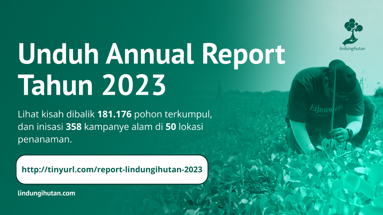 LindungiHutan, sebuah organisasi yang senantiasa berdedikasi pada pelestarian dan perlindungan hutan-hutan di Indonesia telah merilis laporan tahunan sepanjang 2023. Laporan ini merupakan bukti nyata dan komitmen kuat kami terhadap pembangunan berkelanjutan. Selain itu, terbitnya laporan tahunan ini juga diharapkan dapat menumbuhkan kesadaran kepada masyarakat untuk bersama menjaga hutan dan upaya tersebut benar memberikan dampak bagi keberlanjutan lingkungan dan masyarakat sekitar hutan.