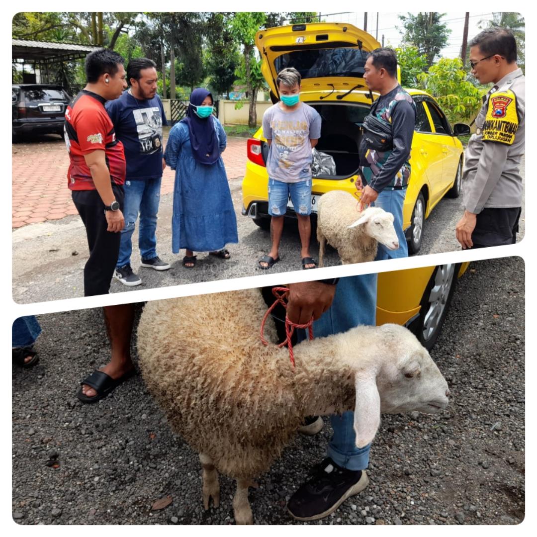 Selain mengamankan pelaku yang telah ditetapkan tersangka, polisi juga berhasil menyita barang bukti mobil mewah jenis Honda Brio nomor polisi N 1856 ME dan juga kambing jenis dormas.