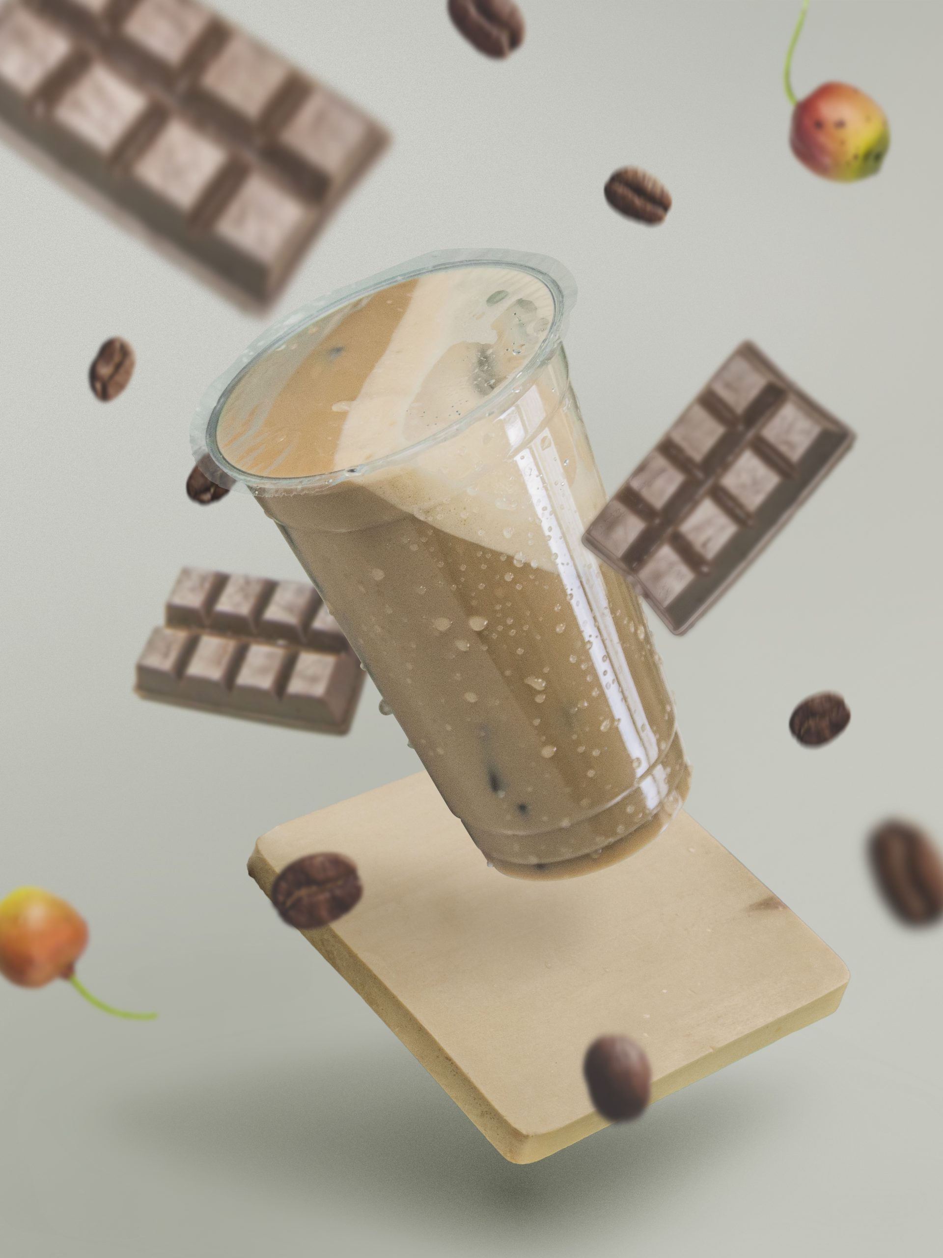 makanan dan minuman modern berkualitas tinggi seperti kopi dingin, es krim, jus