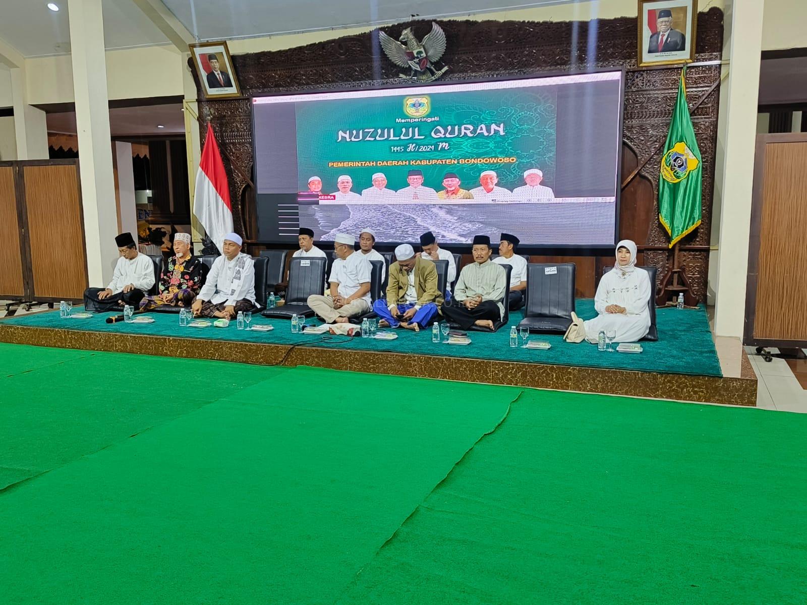 BONDOWOSO, PORTALBANGSA.CO.ID – Pemerintah Kabupaten Bondowoso menggelar peringatan Nuzulul Qur’an di Pendopo kabupaten, pada Rabu (27/3/2024) malam.