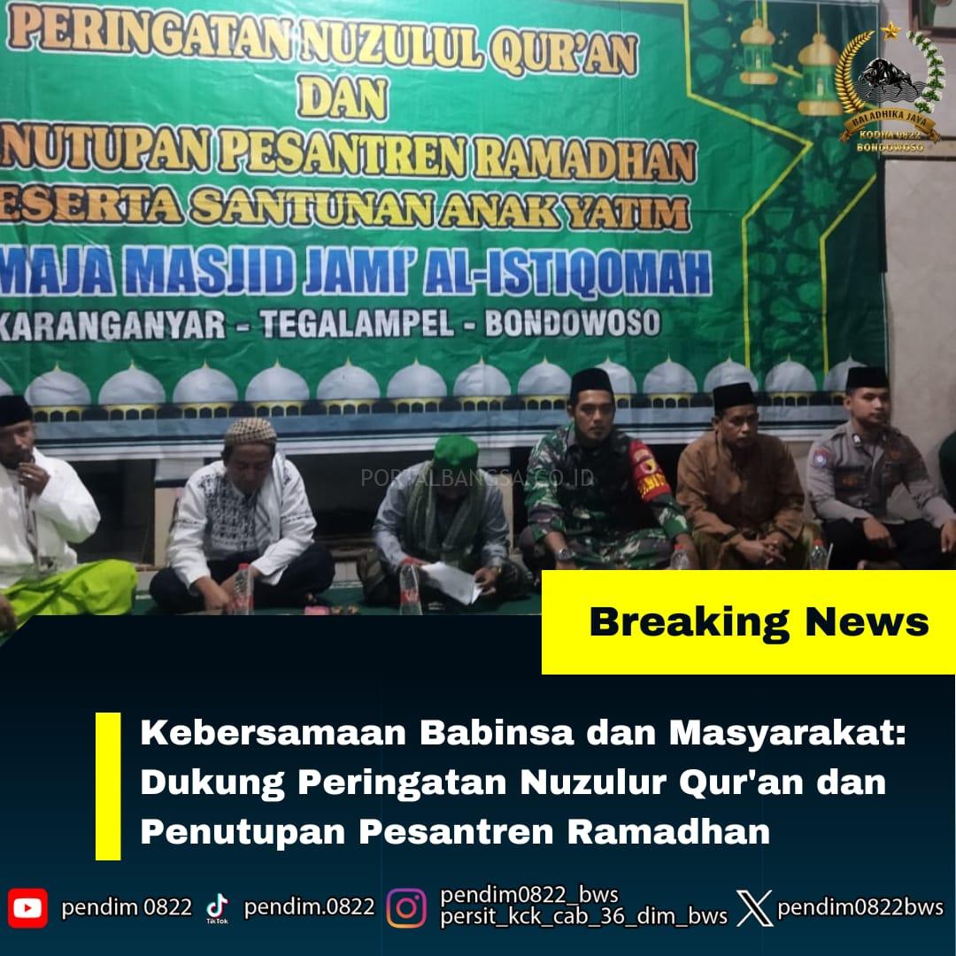 Bondowoso, PORTAL BANGSA. CO.ID – 27 Maret 2024 – Masjid Al-Istiqomah di Desa Karanganyar, Kecamatan Tegalampel, menjadi saksi perayaan Peringatan Nuzulur Qur’an dan penutupan Pesantren Ramadhan Angkatan ke XXIX. Acara ini, yang juga diwarnai dengan santunan untuk anak yatim, berlangsung dengan tertib dan penuh kekhusyukan.