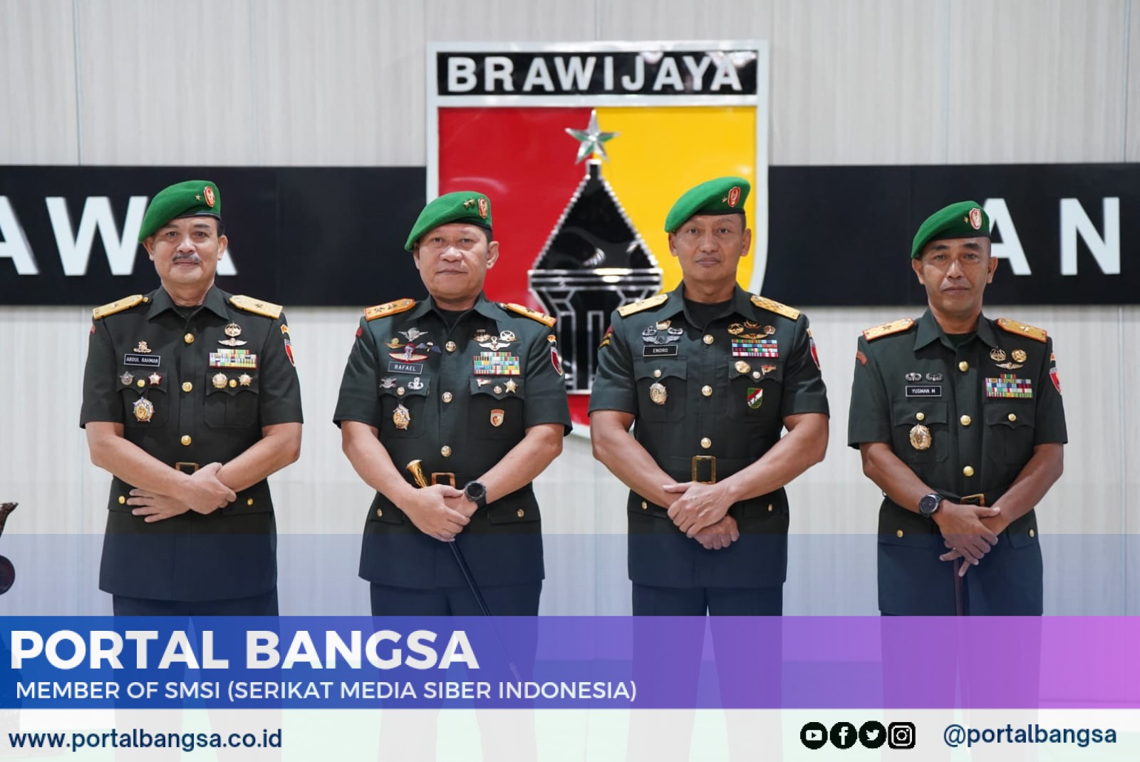 “Kepada pejabat lama, saya ucapkan terima kasih atas kinerja dan dedikasinya. Untuk pejabat baru, saya minta untuk segera beradaptasi, sekaligus berinovasi demi kemajuan Kodam Brawijaya,” tegas Mayjen TNI Rafael.