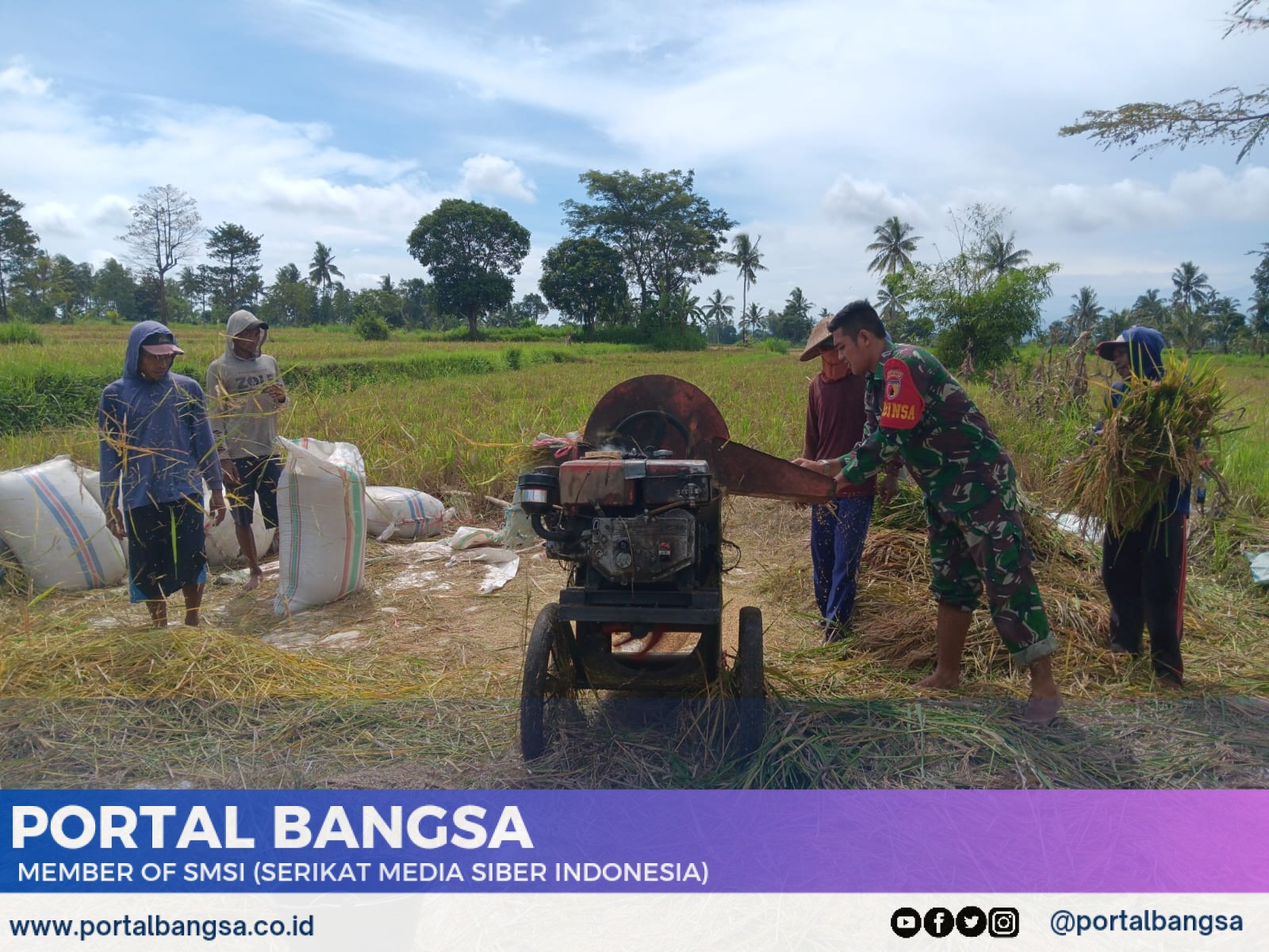Selain membantu proses panen, Babinsa juga saling bertukar pengetahuan tentang cara-cara bertani yang lebih efektif dan efisien. Kehadiran Babinsa di tengah-tengah petani seperti ini diharapkan dapat meningkatkan produktivitas, kualitas hasil pertanian dan menambah silahturahmi.