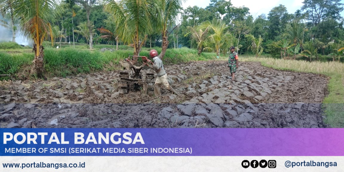 Babinsa Kodim 0822 Bondowoso Serentak Dampingi Petani Mengolah Lahan Sawah