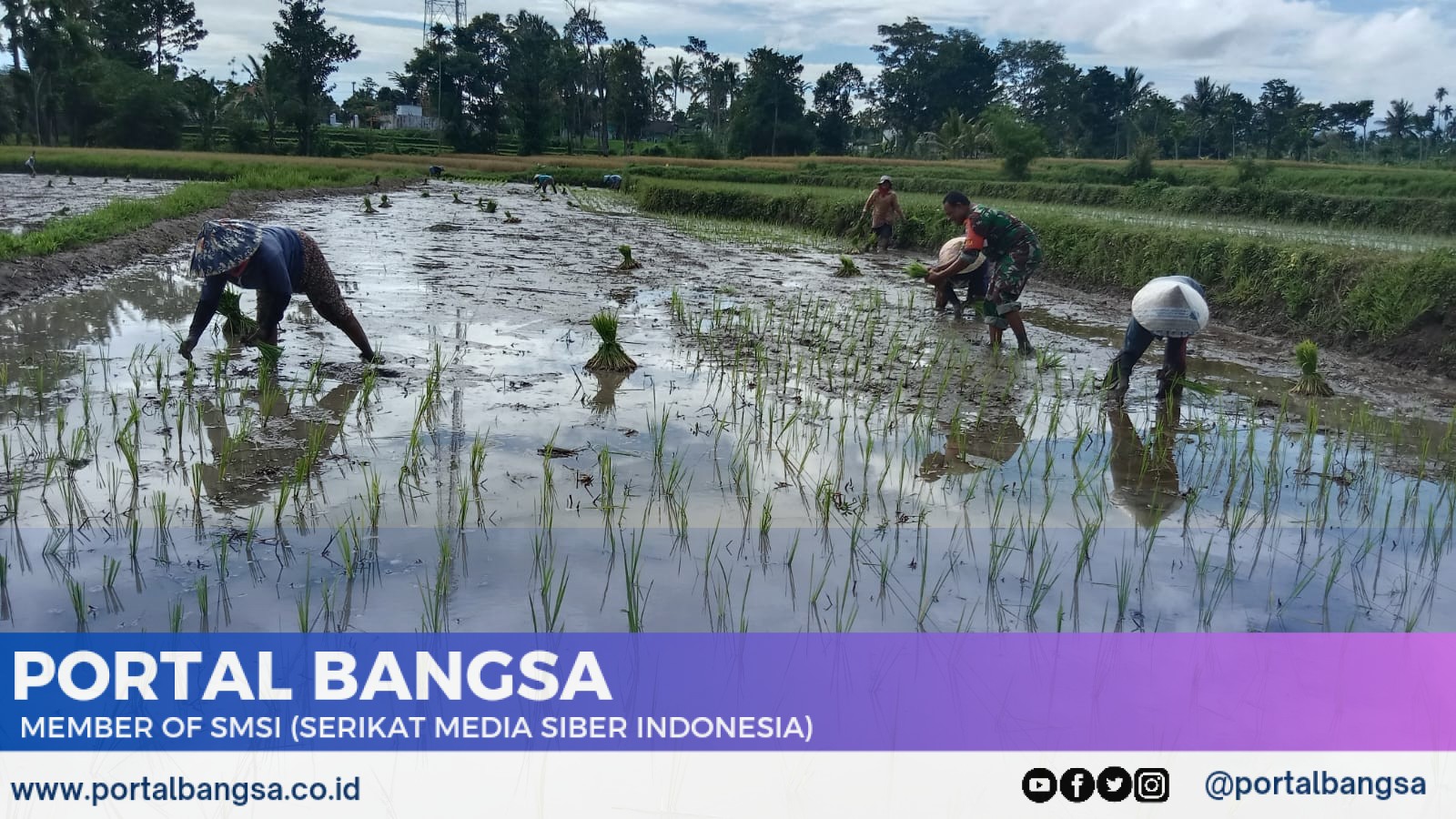 Bondowoso, PORTALBANGSA.CO.ID – Tingkatkan dan Sukseskan Ketahanan Pangan, Babinsa Koramil 0822/12 Sumber wringin Sertu Lopes melaksanakan pendampingan penanaman padi milik Yuli dengan luas lahan -+ 500 m/persegi.