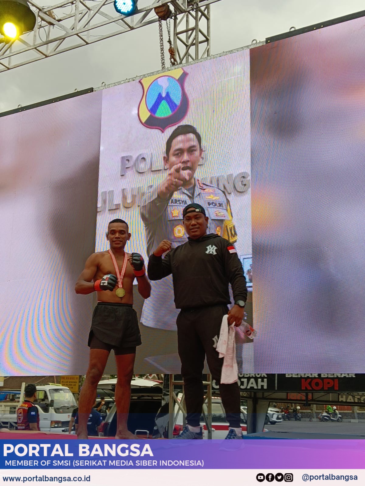 Bondowoso, PORTALBANGSA.CO.ID – Prajurit terbaik Kodim 0822 Bondowoso, Praka Yulianus Imbir, berhasil menorehkan prestasi di kejuaraan pertandingan final Atlit MMA (MIXED MARTIAL ARTS) kelas 65 kilo menang KO sebagai Juara Satu (medali Emas) pada event perebutan sabuk Kapolres Tulungagung (Kapolres Cup) yang di selenggarakan oleh KITT FIGTHER PROMOTION bertempat di GOR lembu Peteng Kabupaten Tulungagung, Minggu (19/5).