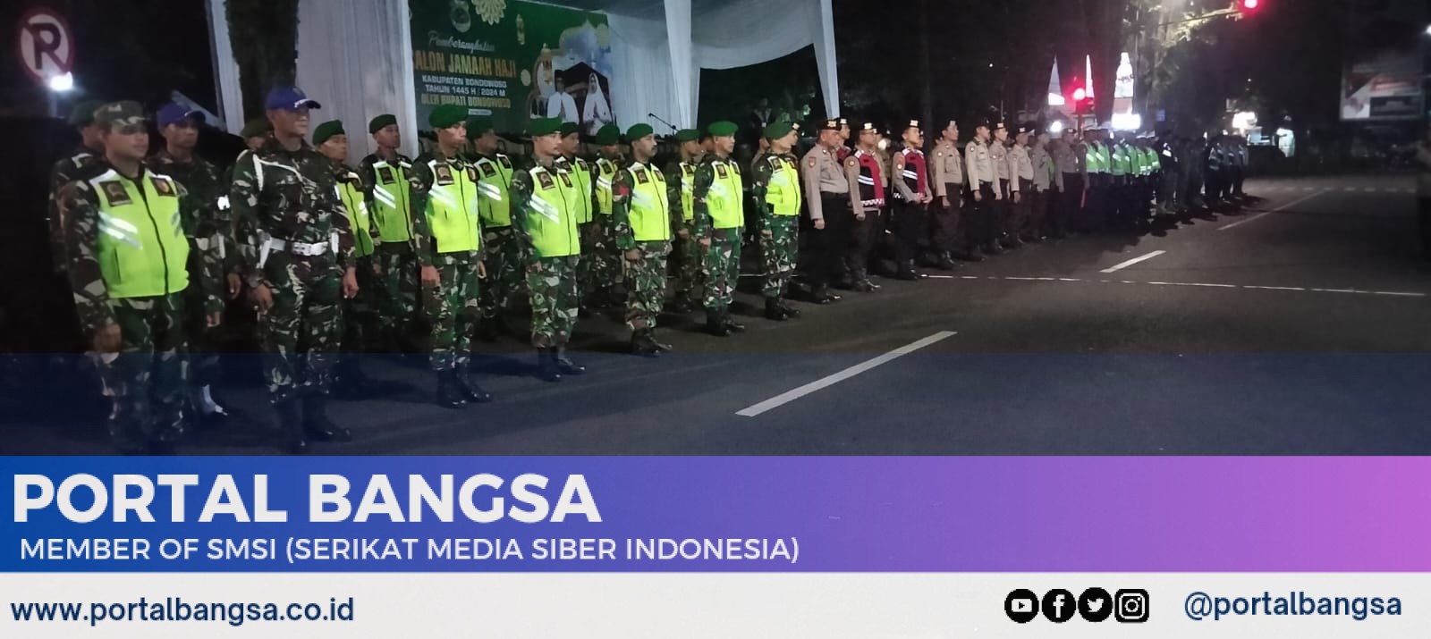 Bondowoso, PORTALBANGSA. CO.ID – 23 Mei 2024 – Pemberangkatan calon jamaah haji Kabupaten Bondowoso yang berlangsung di depan Pendopo Bupati Bondowoso, Kamis (23/5), berjalan aman dan tertib. Acara ini melibatkan berbagai unsur keamanan yang terdiri dari Kodim 0822 Bondowoso, Polres Bondowoso, Dinas Perhubungan, serta Satuan Polisi Pamong Praja (Satpol PP) Bondowoso.