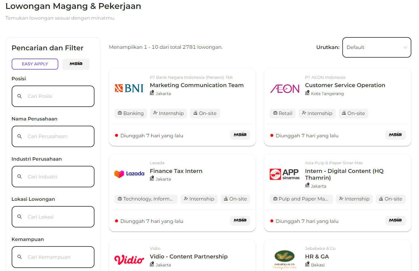 3. Temukan lowongan kerja dan pilih MSIB untuk melihat berbagai perusahaan dan posisi yang tersedia.