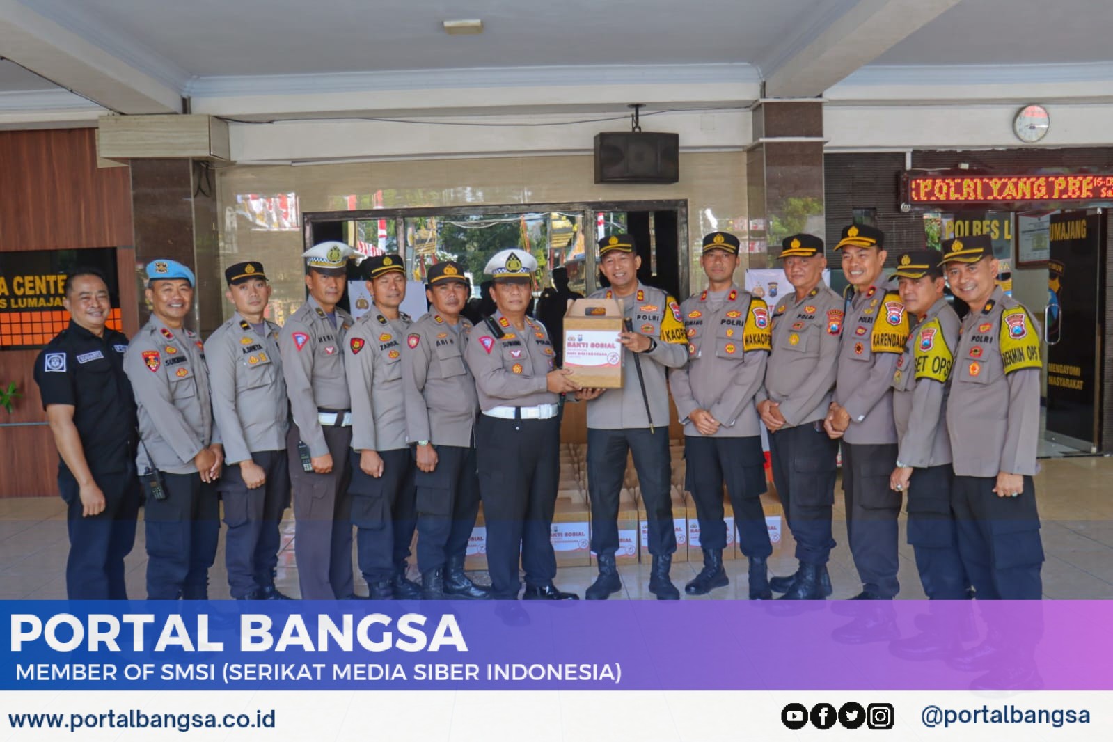 Dalam kegiatan ini, Polres Lumajang membagikan ratusan paket sembako kepada warga kurang mampu di wilayah kecamatan Lumajang.