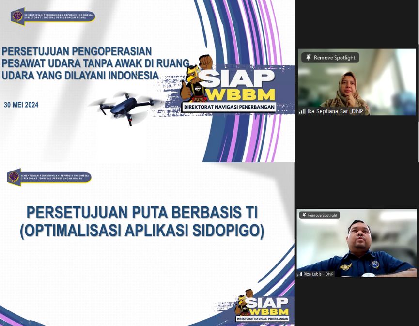 Dalam webinar yang diikuti oleh lebih dari 200 peserta ini, Ibu Ika Septiana Sari memaparkan berbagai topik topik yang dibahas antara lain regulasi terkait PUTA baik di Indonesia maupun internasional, proses persetujuan pengoperasian PUTA, monitoring dan pengawasan, serta persetujuan PUTA dengan menggunakan aplikasi SIDOPI-GO.